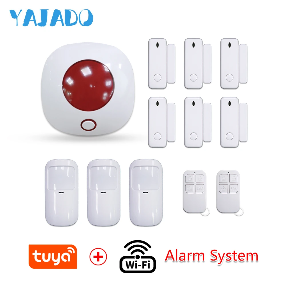 Special Offer of YAJADO Tuya WiFi Home Security Alarm System with Wireless Detectors & Indoor Siren Alarm Speaker Android&iOS APP Remote Control