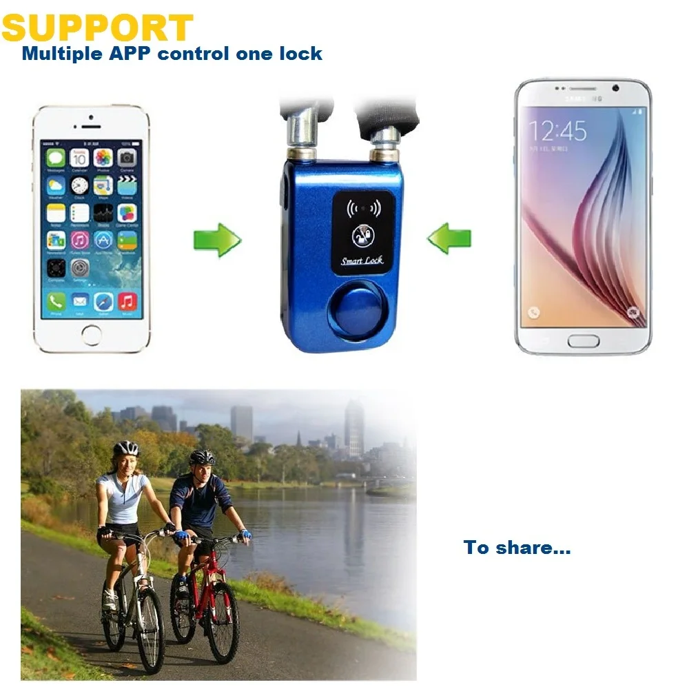 .Images of Electric anti theft bluetooth smart Lock, 80cm long Wire Rope Waterproof 110dB Alarm auto alert security door bike lock