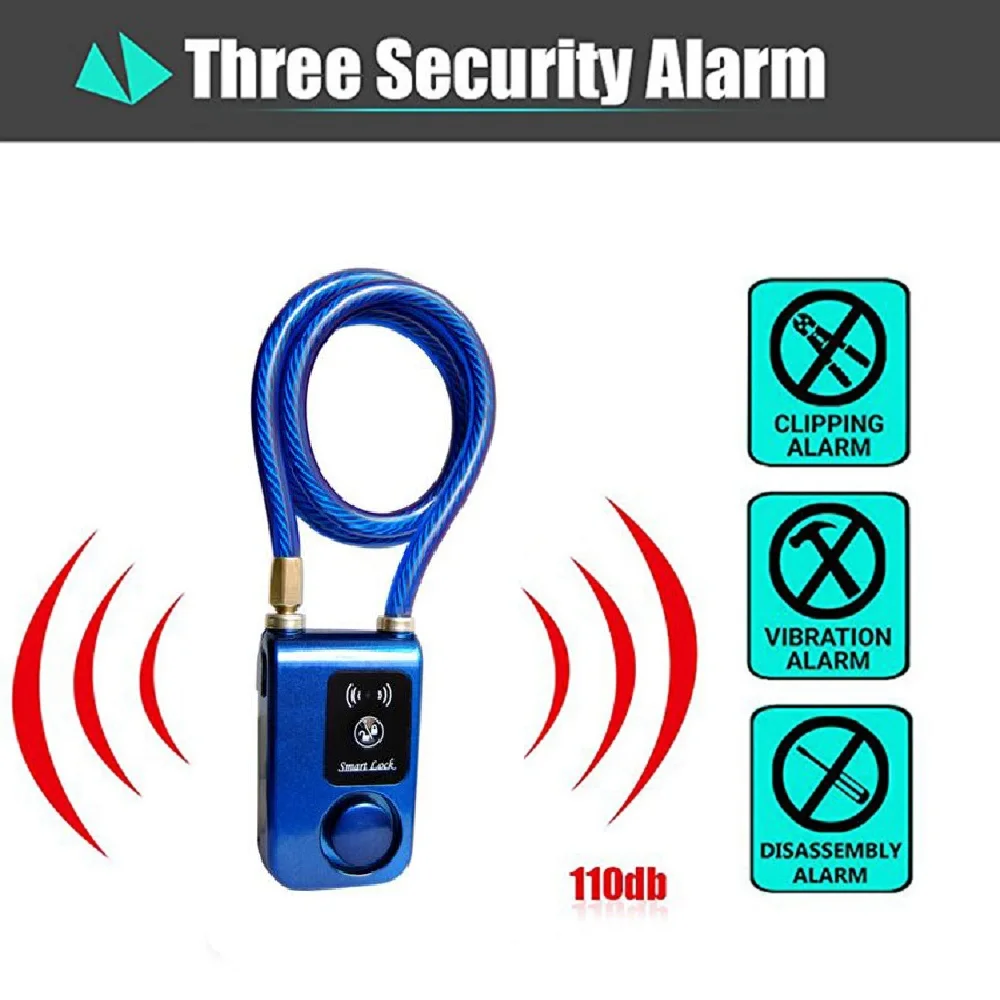 BuyElectric anti theft bluetooth smart Lock, 80cm long Wire Rope Waterproof 110dB Alarm auto alert security door bike lockFree Shipping
